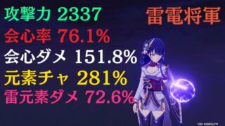 雷電将軍の聖遺物の杯は、入手が用意な攻撃杯で良いので、会心率と会心ダメ付きで初期4オプションの物を片っ端から強化していけば意外と簡単にスコアを上げられると思います。(もちろん杯以外を絶縁4セットで揃えて、杯を自由枠にするの忘れずに)