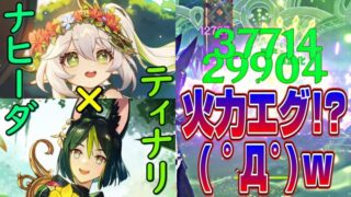 今回はナヒーダとティナリを編成したパーティーを使ってみたら思っていた以上に無凸ティナリが暴れだしたのでその様子を紹介します!